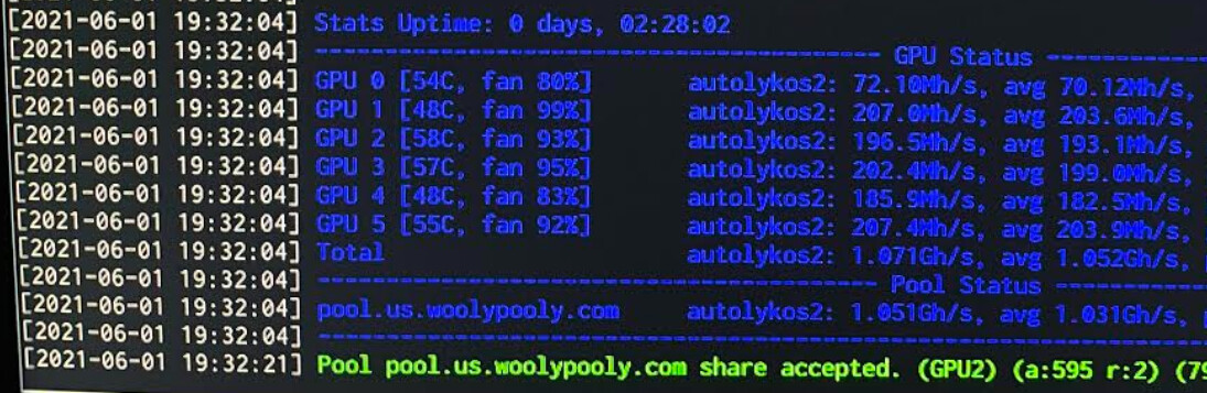 Using hiveos, woolypooly and nanominer.