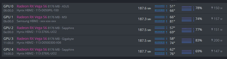 nice settings. My Vegas 56 only manage 187 mh/s, why do your Vegas manage more than 200 Mh/s. Can you help me out on that?