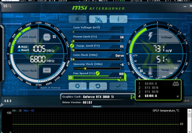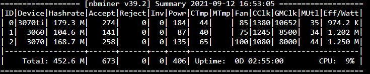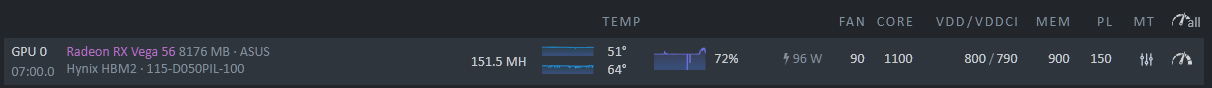 All seems good. All you can do now if you want more hashrate, is increasing core clock. But that’s tricky. Sometimes 100mhz won’t change anything, sometimes 20mhz may have impact.