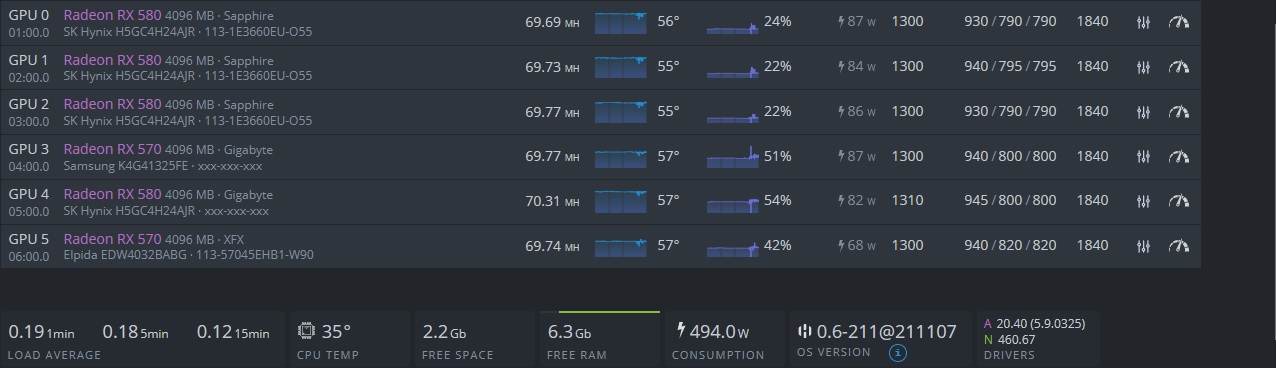 Hynix (lolminer v1.42): 39 Mhash (Only 73w Power)