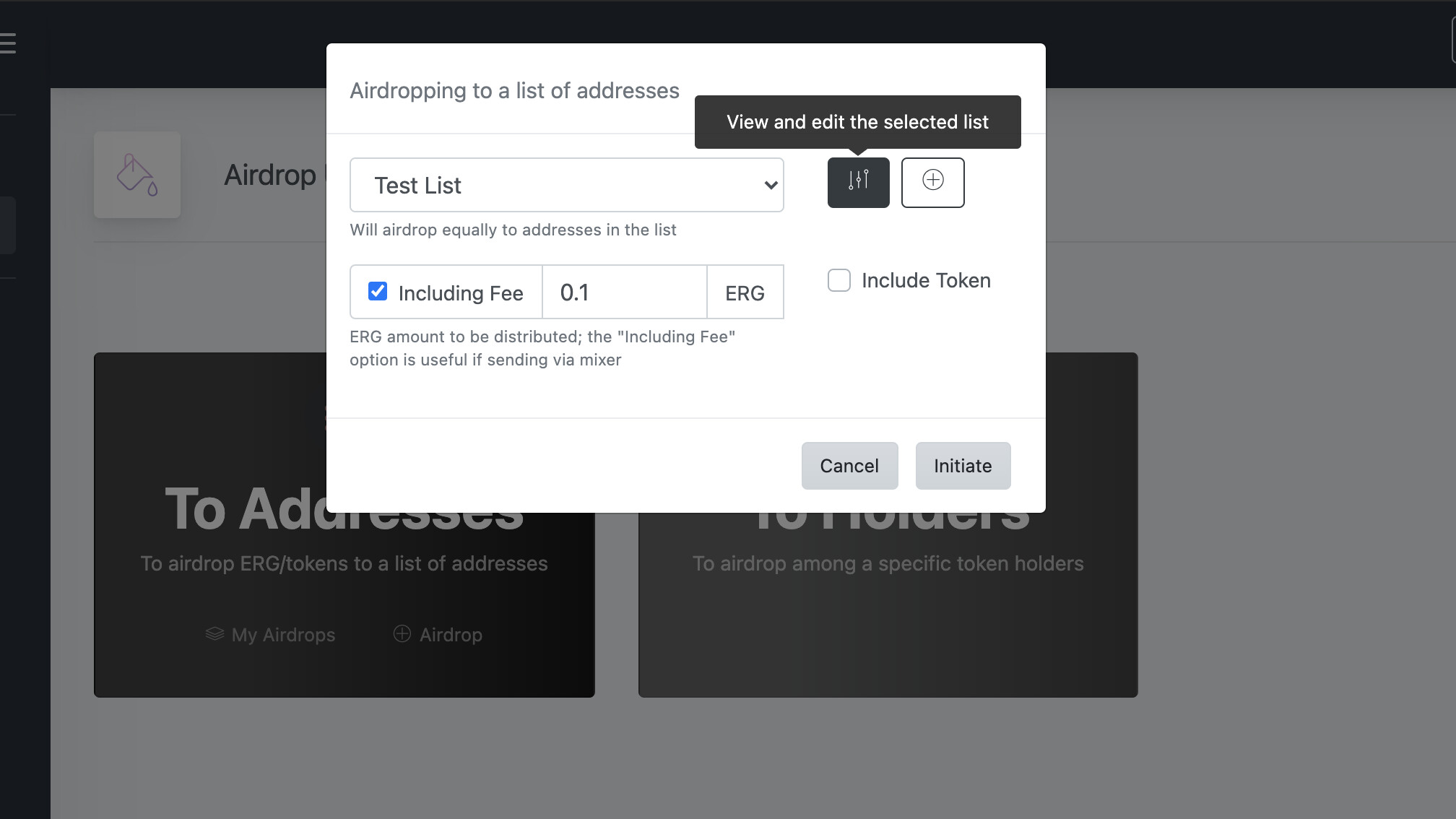 - To donate some ergs to a list of addresses, one will create the list, and every time he wants to donate to the list, he only selects it and specifies the amount.