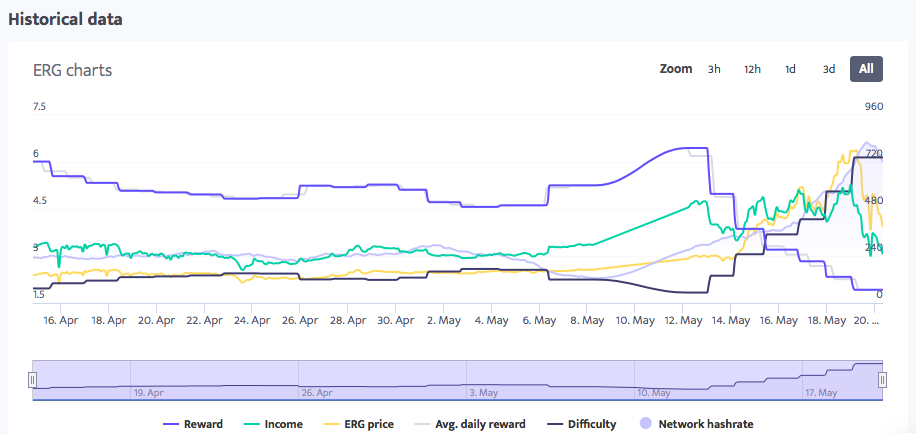 Is it the design of ergo networks which give reward linearly opposite to difficulty? In the last couple of days, ergo ATH surpassing ethereum, but quickly decline now. Shares are too low. How to predict this system’s profitability in the future?