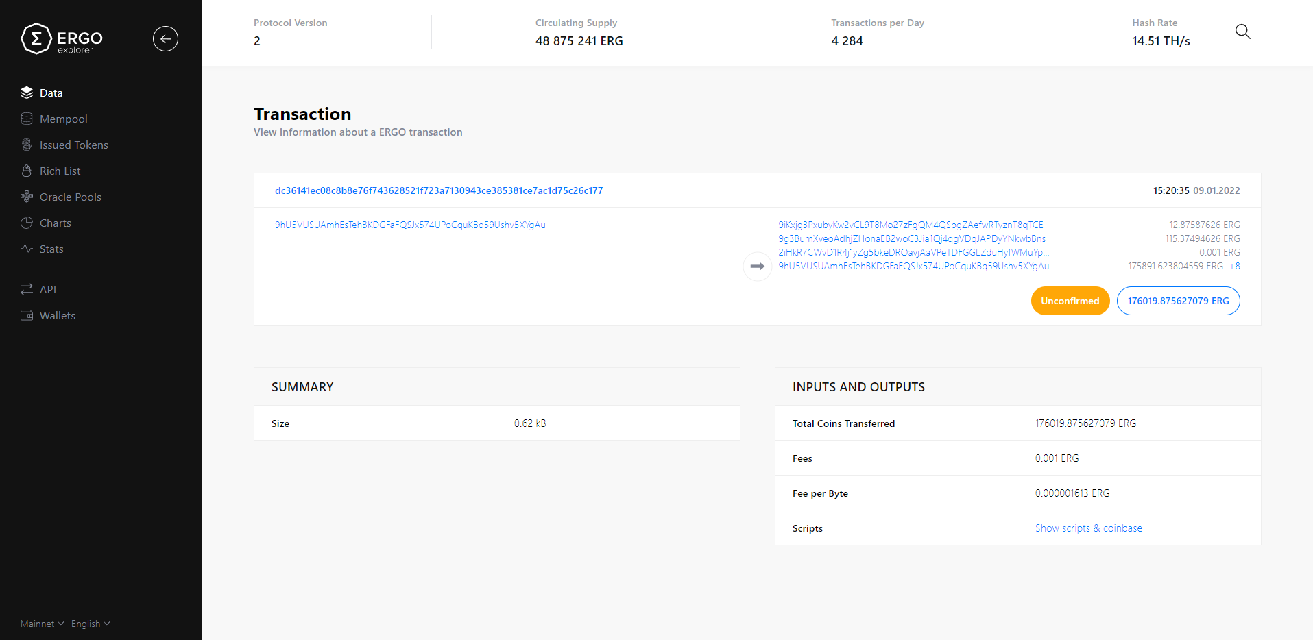 When I wanted to check the transaction number in Ergoscan the 1st image popped up.