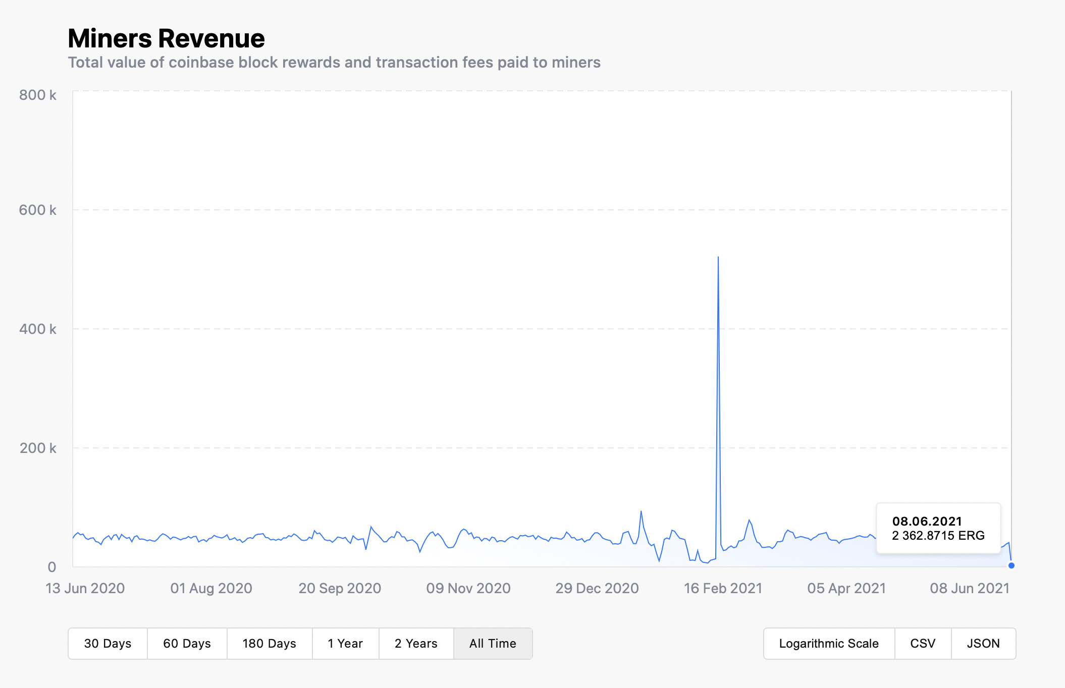 Hi Ergonauts, I am a small miner new to ERG mining. I have noticed today the mining revenue chart shown on Ergo Explorer is at all-time low? Is there any reason behind this? Or I am missing out something?