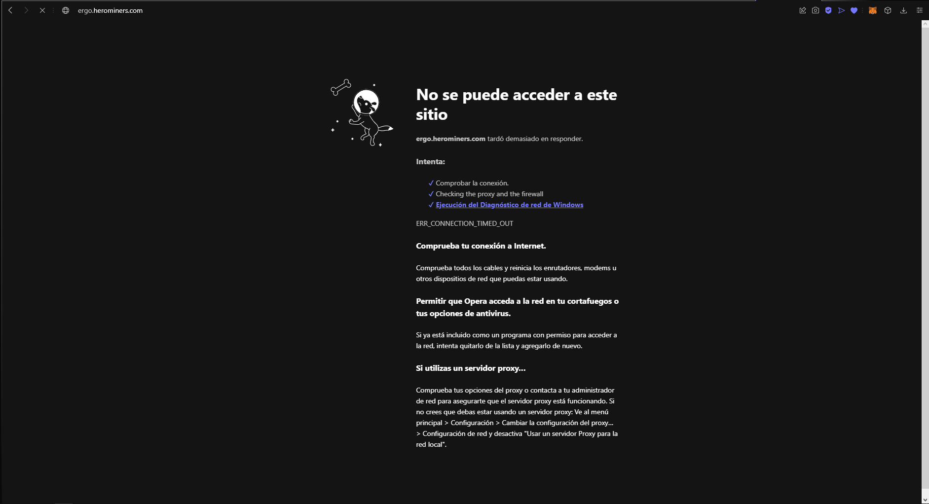 Hello, I have a problem with the erg.herominers.com page since I changed the minimum payment and I put the ip that it asks for to verify, since i did I can no longer enter and I can’t connect to any pool, I think it is for the same reason.