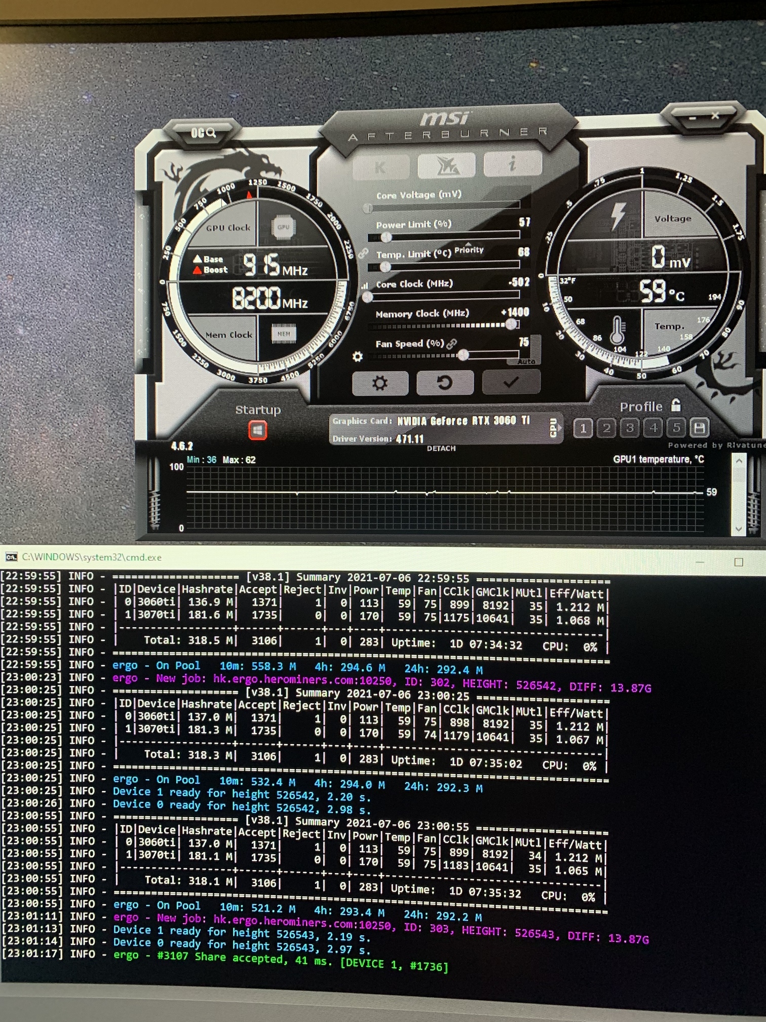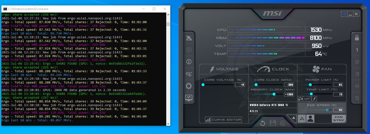 I am very new to mining and having a problem with my GPU setting for Ergo. I have seen people achieve 170 MH/s at 130W on 3060 Ti with this setting: