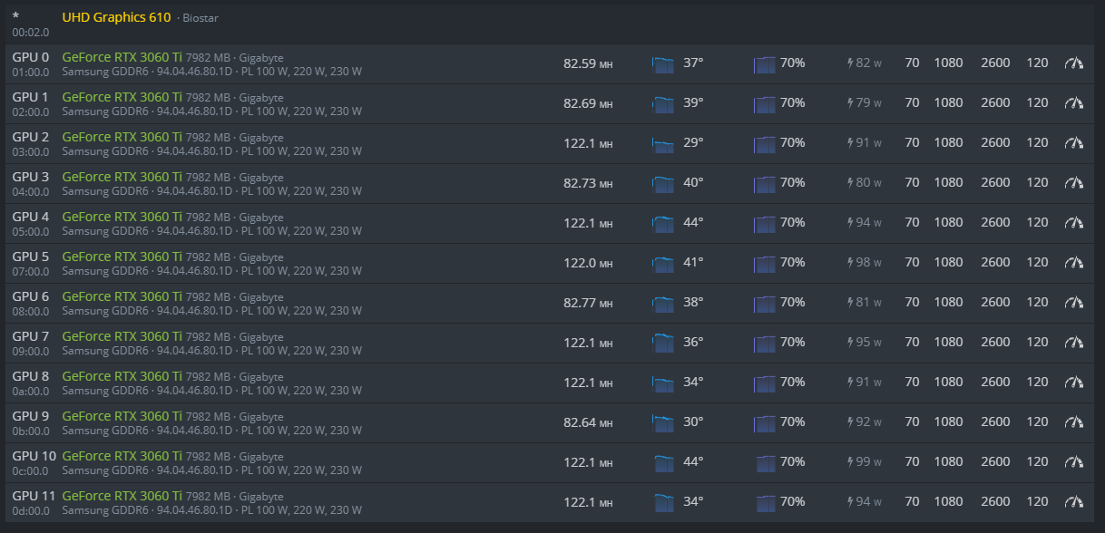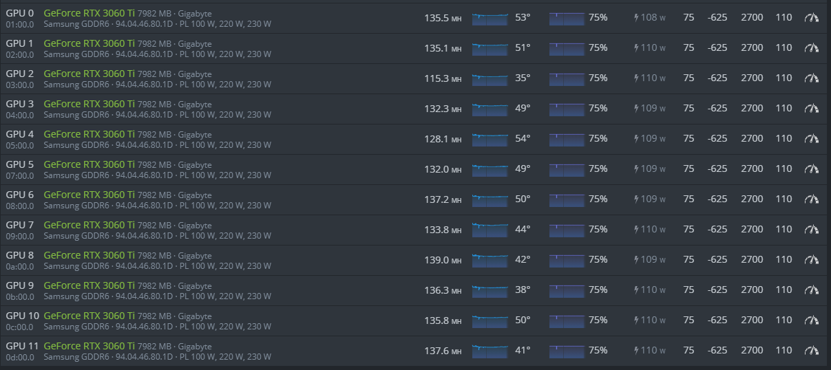Something wrong about LHR cards. I had MSi RTX 3060 Ti Gaming X LHR (Dual Fan) with Hynix memory. It was stable 131 mh/s 116w but now I got Galax RTX 3070 LHR 1 click oc. Its worse than msi rtx 3060 ti gaming x. It stuck 91 mh/s even with Samsung memory. I guess lhr cards have limit on any kind mining.