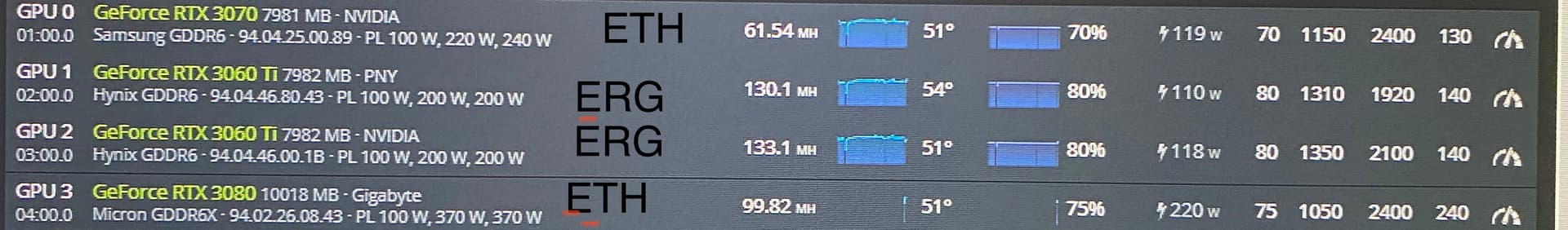 I picked up a Gigabyte Eagle OC 3060 ti LHR V2 (Samsung DDR6) yesterday and it’s definitely super-nerfed for mining ERG. Can’t get over 90mhs on any OC settings. Weirdly, I switched to RVN and it’s pulling 29mhs no problems so I will stick to that. Also was able to get 43mhs on ETH using NBminer.