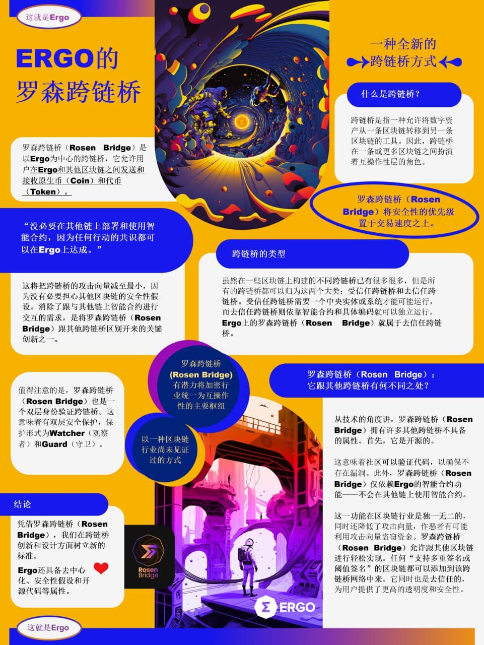 罗森跨链桥(Rosen Bridge)是以Ergo为中心的跨链桥框架,支持用户在Ergo和任何其他区块链之间发送和接收原生币(Coin)和代币(Token)。无需在其他区块链上使用智能合约,因为任何行动的共识都可以在Ergo达成。