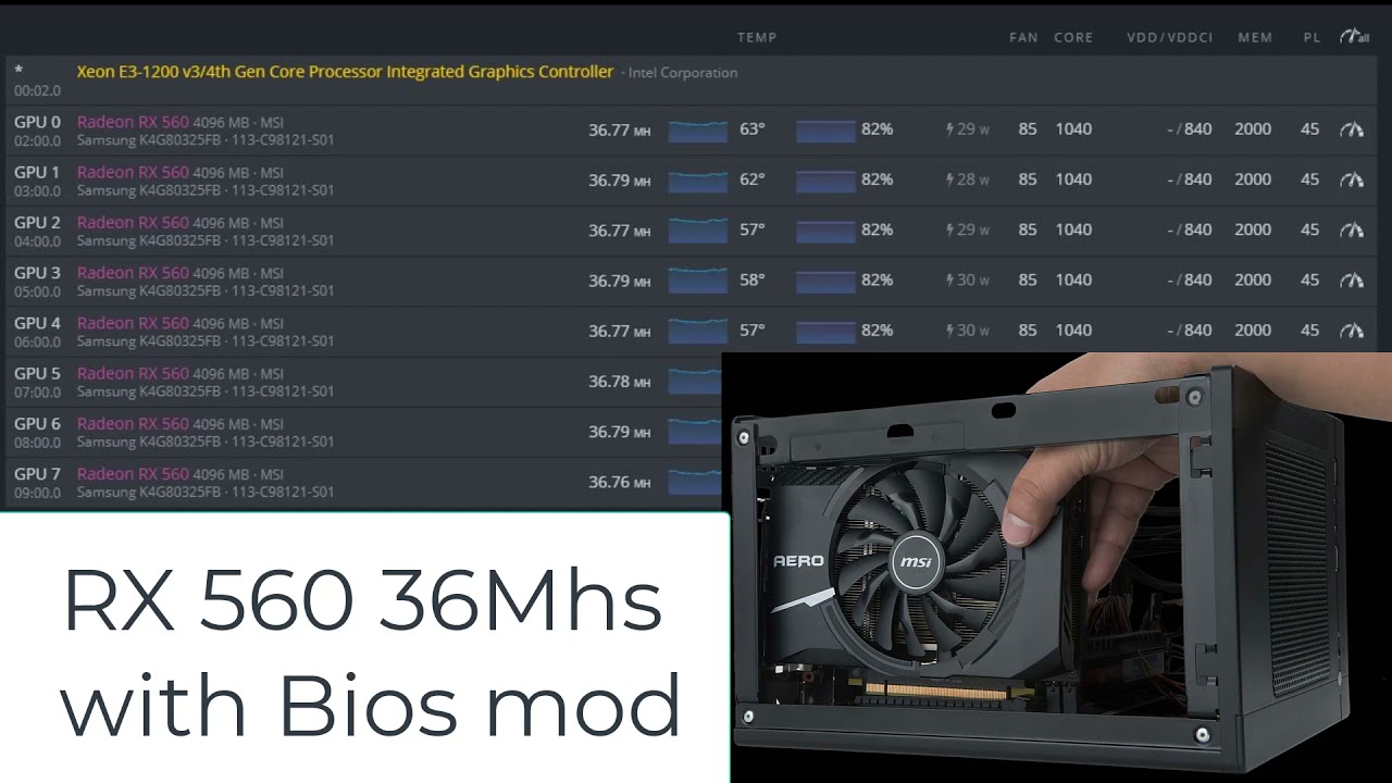 Great ! My mod bios file can make RX 560 4Gb work with 36Mhs for Ergo coin algorithm.